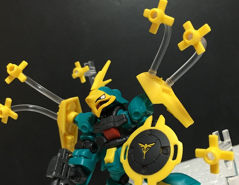 …肩アーマーとシールドが干渉するので、ポージングが大変だった。