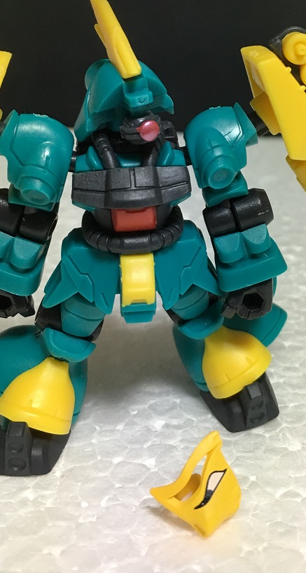 コクピットハッチや腰前面の黄色い部分も別パーツになっており、色分けバッチリ。