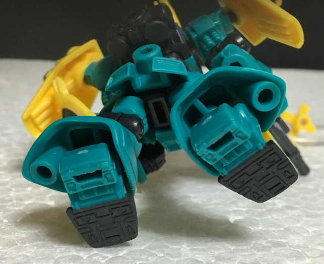 下腿部装甲の内部にはバーニアがあり、差し込み用の穴まで造形されているのに、肝心のバーニアが無いという。この差し込み穴自体をバーニアに見立てろというのか?