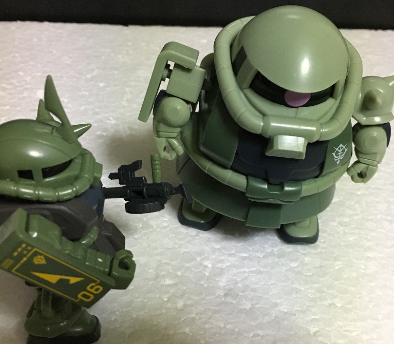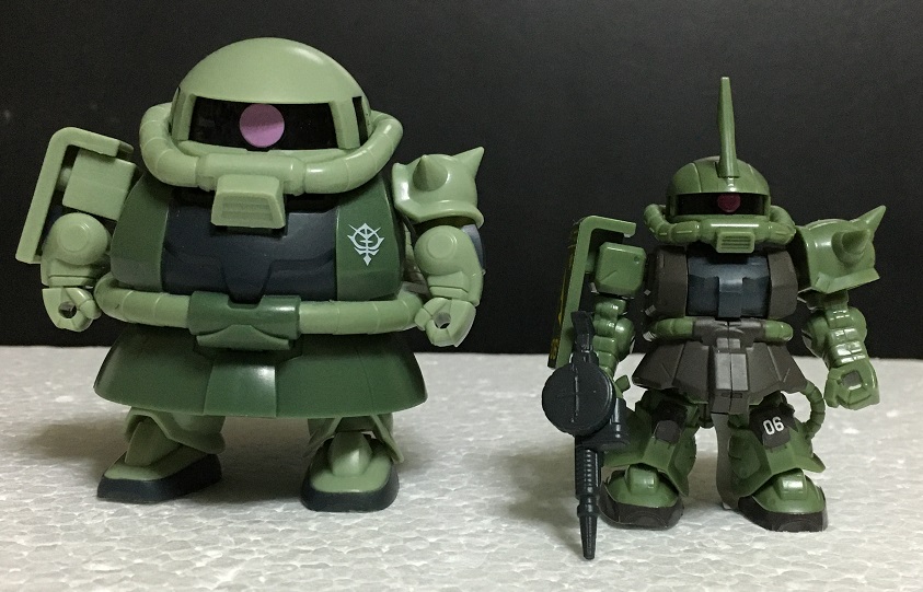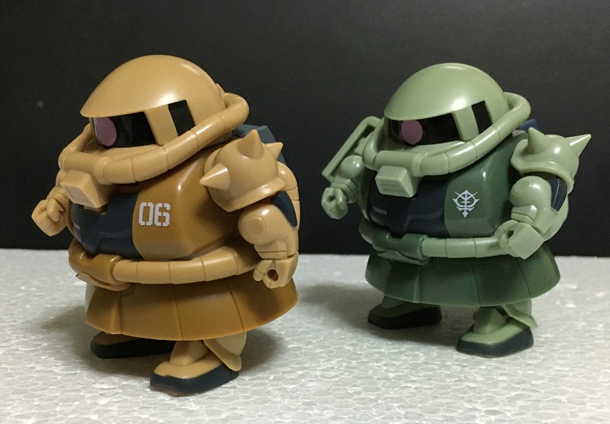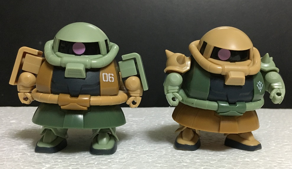 今回は、これまでに紹介した量産型ザクとザク(デザートカラー)の比較を行います。