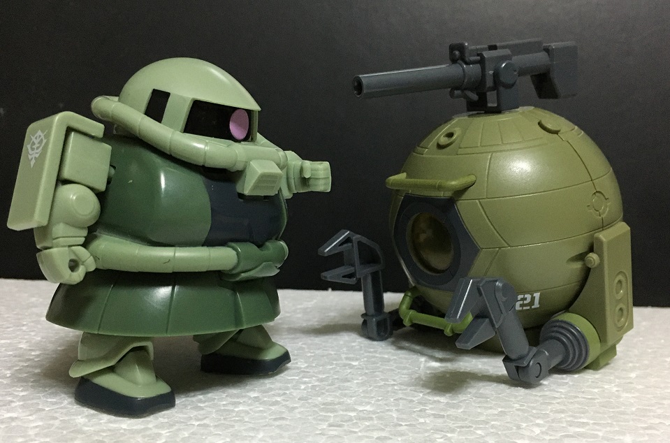 初代『ガンダム』本編ではボールを蹴飛ばしてたが、このボール相手では蹴飛ばすのは大変そうだ。