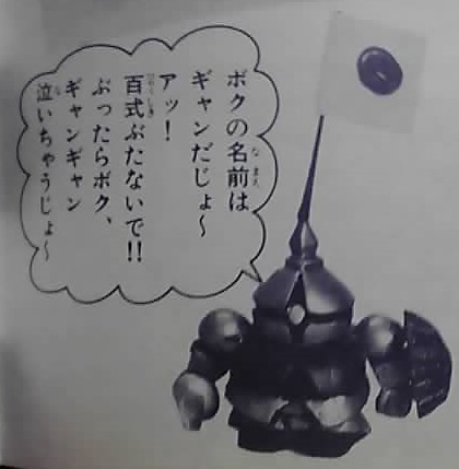 あと「ギャンギャン泣いちゃうじょ~」と言わせるため、ギャンが選ばれたものと思われます。
