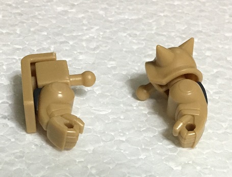 上腕(肩)と前腕が別パーツで、肘を曲げることはできませんが、グリグリ動かすことは可能。