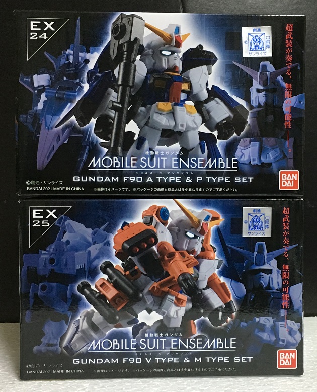 「機動戦士ガンダム MOBILE SUIT ENSEMBLE EX24 ガンダムF90Aタイプ&Pタイプセット」、「機動戦士ガンダム MOBILE SUIT ENSEMBLE EX25 ガンダムF90Vタイプ&Mタイプセット」