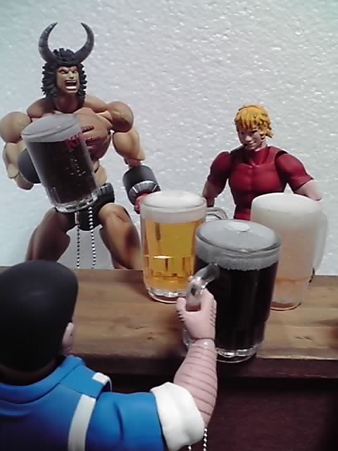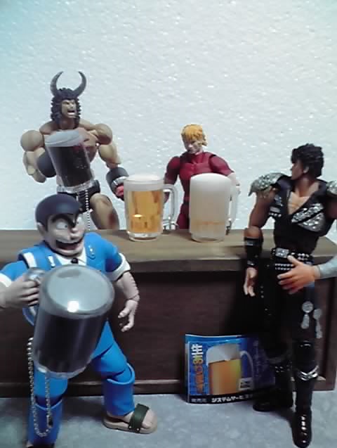 グラスが大きいっていうなら手や体がデカい人と並べればいいじゃない、って感じで屈強な男たちに集まってもらいました(・o・) 全員「少年ジャンプ」のキャラですが、フィギュアの発売元はバラバラです(^^;)(ちなみに両さんがS.H.Figuarts.、ケンシロウがリボルテック、バッファローマンが超像可動、コブジョー・ギリアンがfigma)