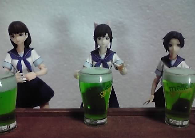 サイズ的には1/12フィギュアと並べるには大き過ぎます。フルーツパフェを入れる容器みたいだ…(^^;)>