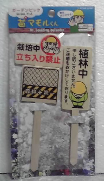 工事用のバリケードなら、↑のピックの絵みたいな金網タイプのも欲しかったなと。(ちなみに画像のガーデンピックは、ダイソーの園芸コーナーで買いました)