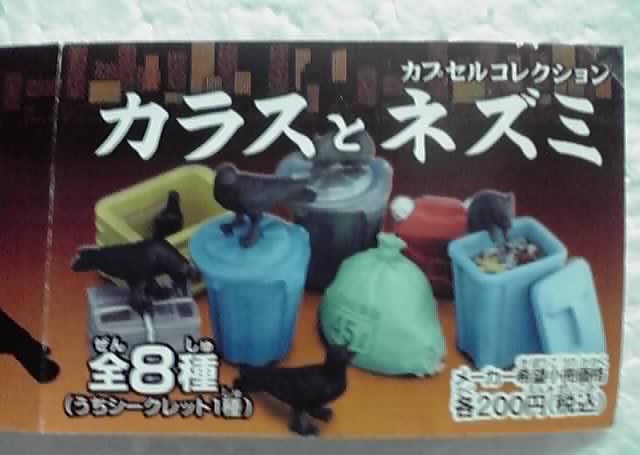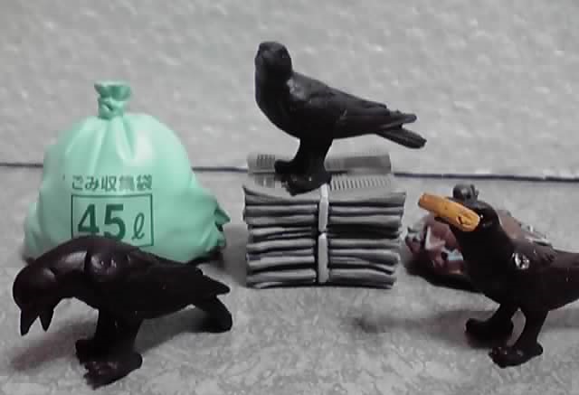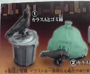 その名の通り、カラス又はネズミがゴミ出し場のいろいろな物とセットになっています。