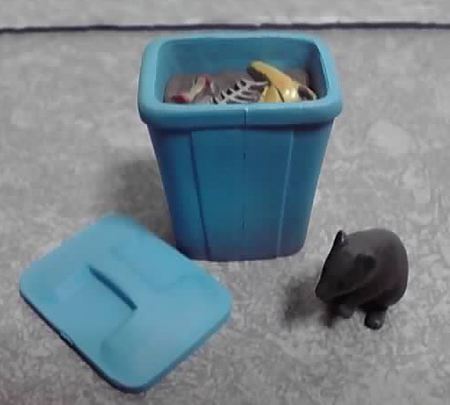 これまた新造形同士のセットです。このゴミ箱は四角いタイプで、フタが別パーツとなっています。ネズミは⑤と同じ物です。