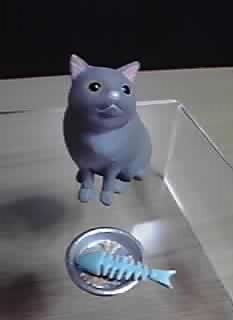 茶白と同じポーズで、エサ皿もお魚も同じ物が付属。