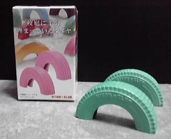 単にタイヤが欲しいのなら、スケールモデルやラジコン用のを使う手もあるでしょう。このアイテムを使うなら、遊具用の色付きタイヤとしてとか、バトル漫画みたいな攻撃の余波で切断されたタイヤとして使えそうです。