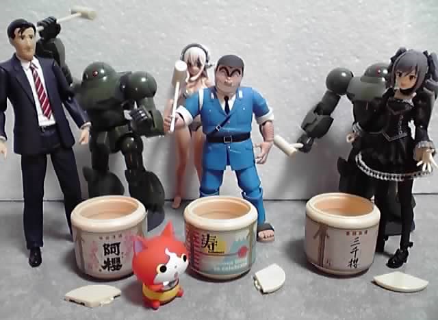 彼らが持ってる木槌ですが、意外と(?)柄の部分が太いので、持たせるフィギュアの手首パーツが傷まないように気を付けましょう。