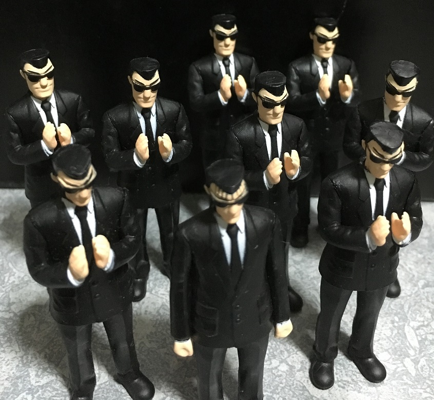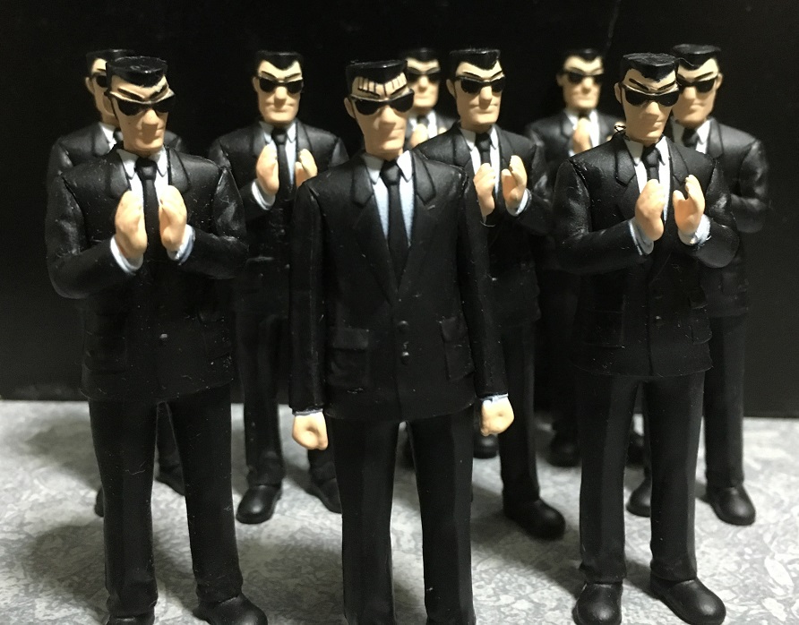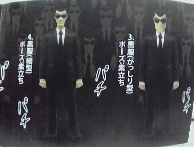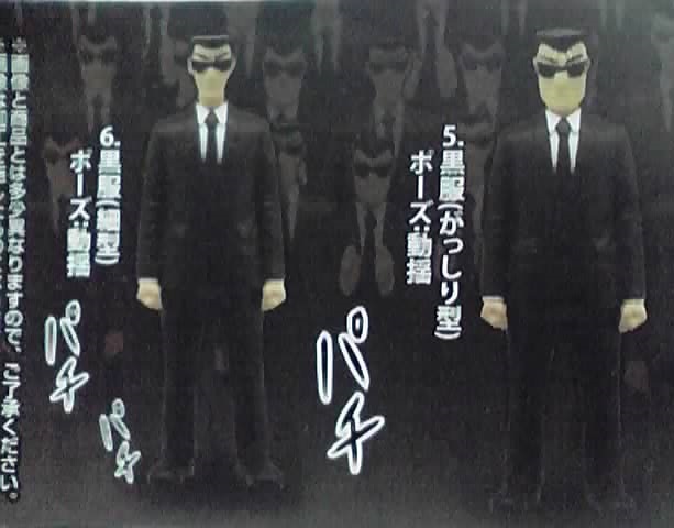 …と思って改めて確認してみたんだけど、この商品の黒服ってチーム利根川のどの黒服とも違う顔してるな。意外と個性が付いた顔になってるから、慣れると『おそ松さん』並みに区別が容易になりそうだ、チーム利根川(^^;)