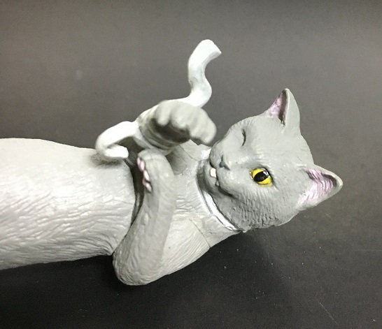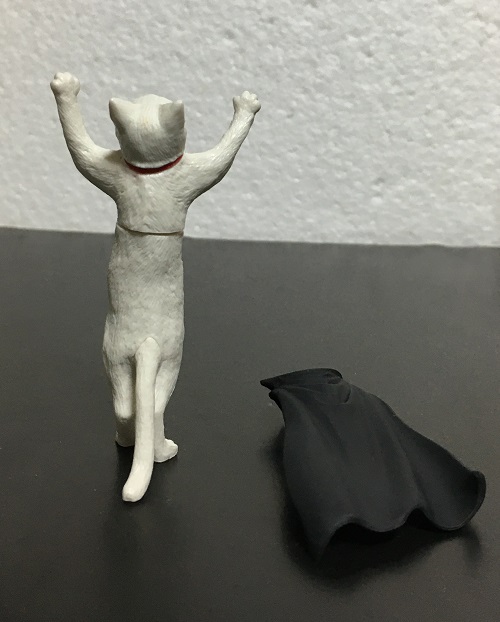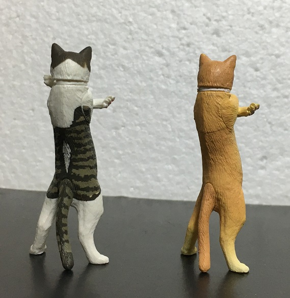 背面はもう見せてるので、キジトラとの2ショットを。この2匹は同じ造形で色違いとなっています。動物系のフィギュアでよくある仕様ですね。