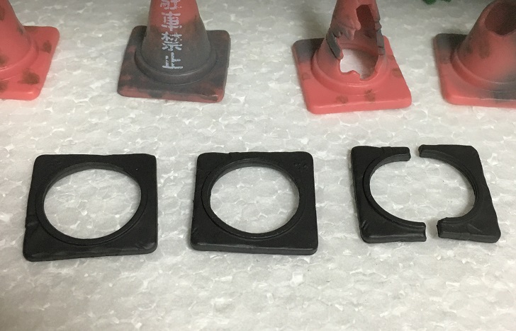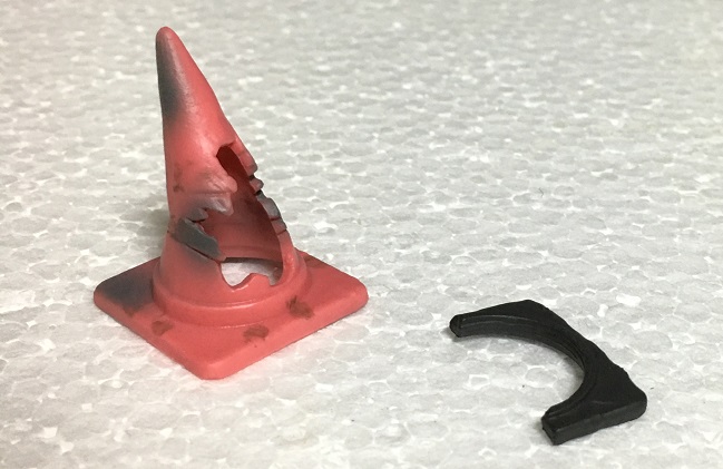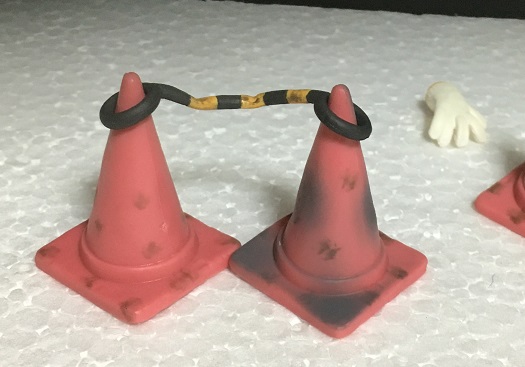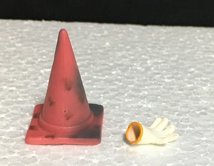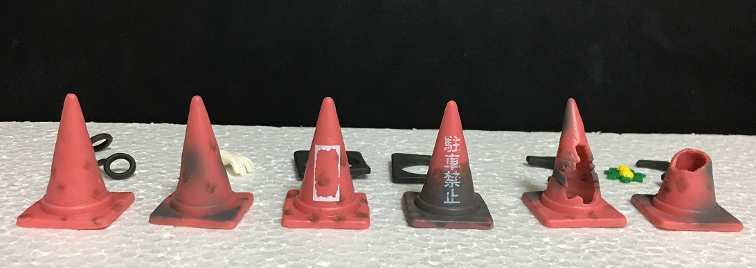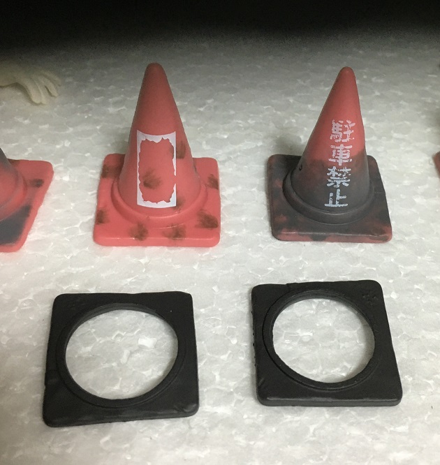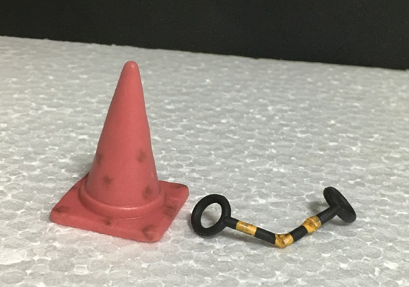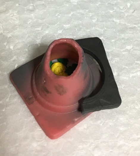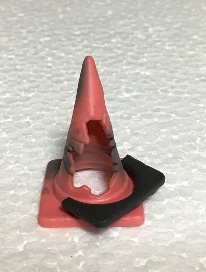 パイロンのミニチュアはいろいろなメーカーからいろいろなサイズでけっこう出てたりするのですが、今回の商品みたいに悪い状態を再現した物はあまり無いと思います。