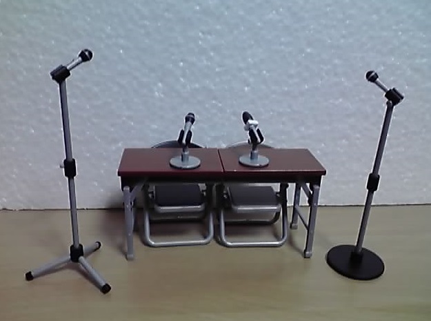 第1弾はパイプ椅子とそれを載せる台車、第2弾では長机が追加されましたが、今回はマイクセットが追加されました。