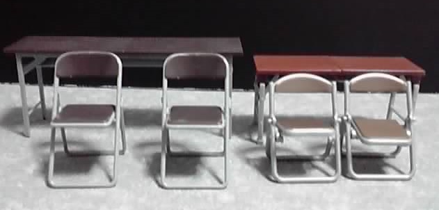 前回ハセガワの「1/12部室の机と椅子」との違いをアレコレ書いたものの、比較の画像を貼ってなかったので、今回は用意しました。