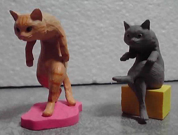 立ってる姿は「猫ってこんなポーズ取る時あるよね~」って感じですし、座っている方はありえないけど「いい味」出しています。(でも横に倒したら、床に体を擦りつけてる風にもなります)