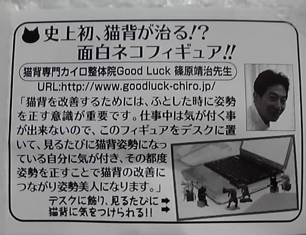 あと、第1弾にはポーズの違う座り猫背や、猫背を克服した「師範代ネコ」もいるようで、そっちも機会があったら手に入れたいです。
