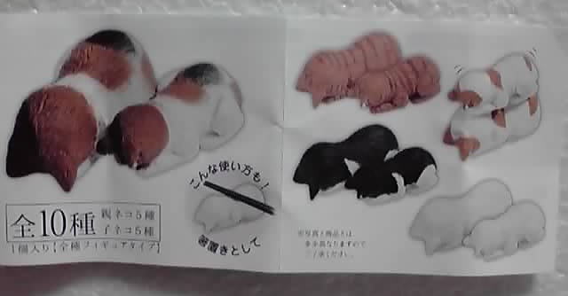 親猫5種と子猫5種ですが、それぞれの造形自体は同じ物。