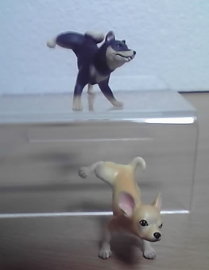 私が当てたのは、チワワ(フォーン)と柴犬(黒)です。小さ目のフィギュアなので、チワワはともかく柴犬は1/12とは並べるのはキビシイです。