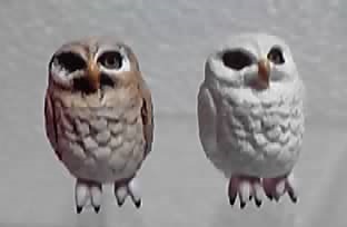 全8種類で、造形は3つのようです。私が当てたコキンメフクロウ(茶色と灰色の2種)は小さいのですが、他の2つの内アフリカオオコノハズクは大き目、スピックスコノハズクはそれより少し小さ目のサイズのようです。とはいえ、たぶん、1/12フィギュアと並べるには小さ目だと思います。(フクロウの大きさがピンと来なくて(^^;)>)