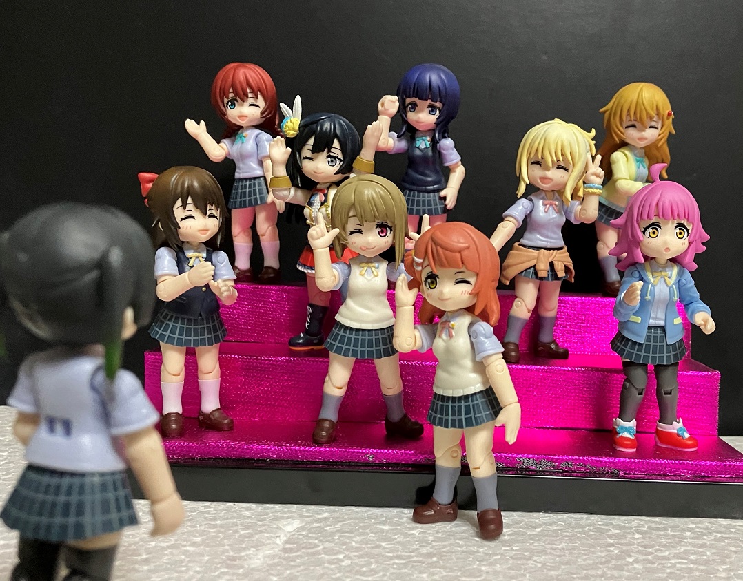 全員をお見せしたものの、各記事で2人ずつだったので、今回は全員揃っている画像を撮りました。『ニジガク』の9人のスクールアイドルと、彼女たちを応援する高咲 侑。10人が大集合です!!