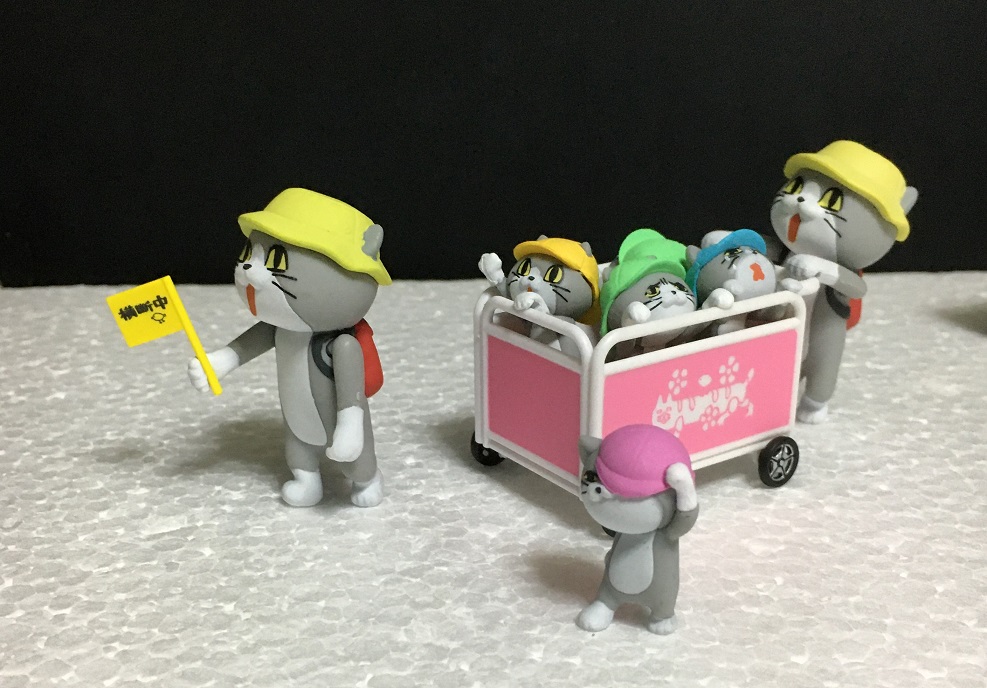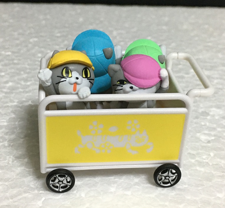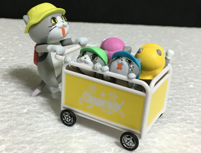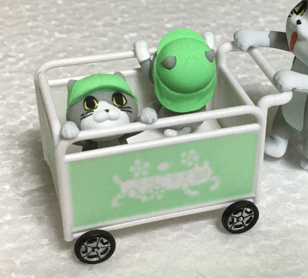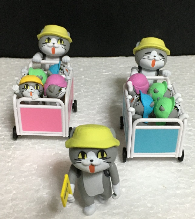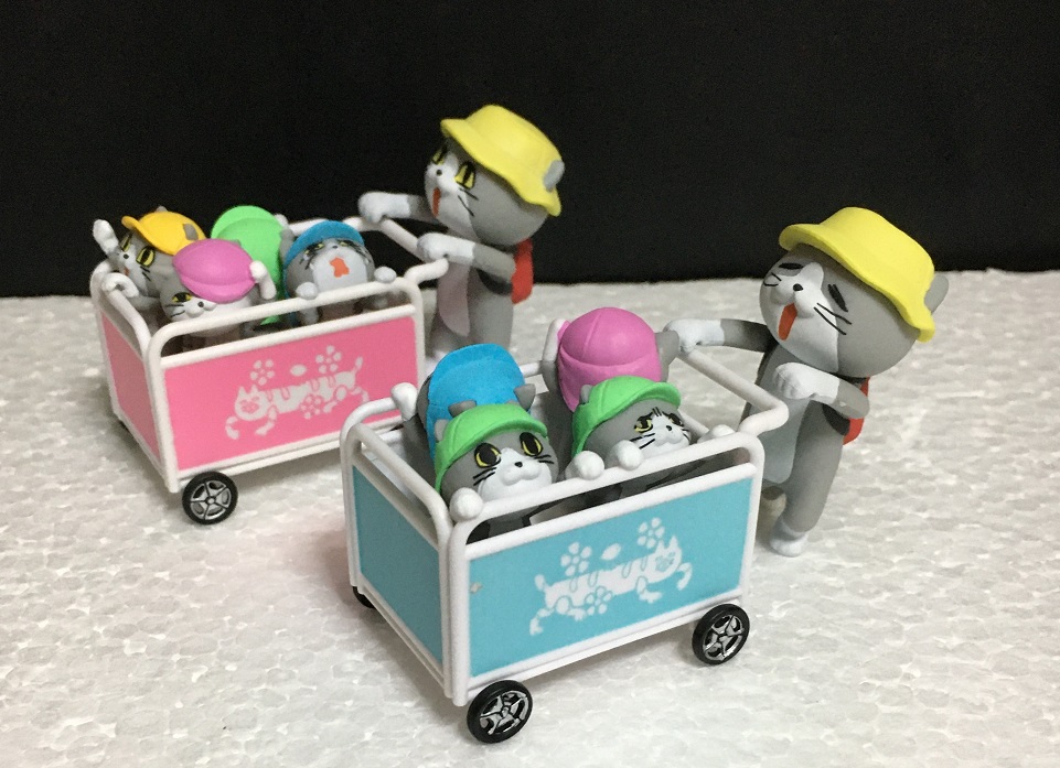 園児猫とおさんぽカートがセットになったものと、そのカートを押す保育士猫という商品名どおり「保育園」関連で構成されています。