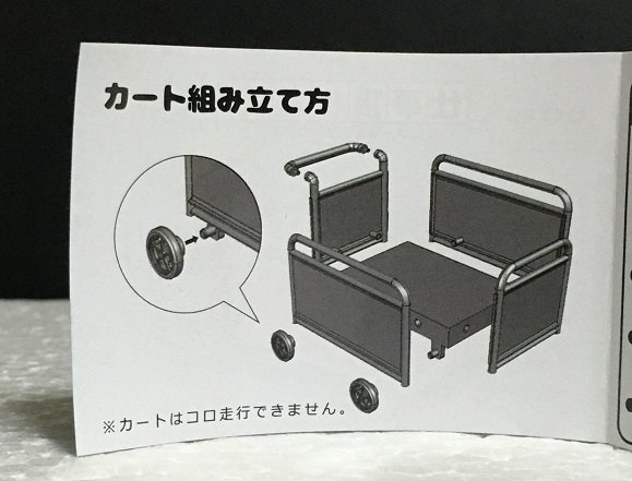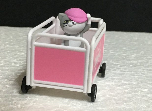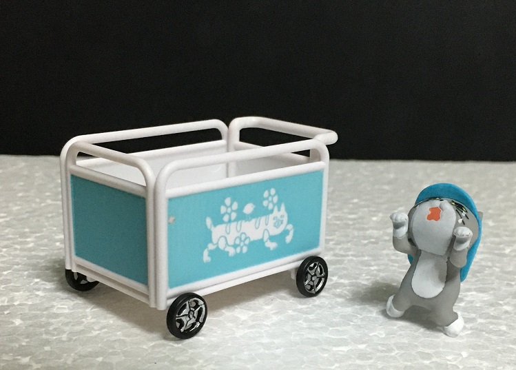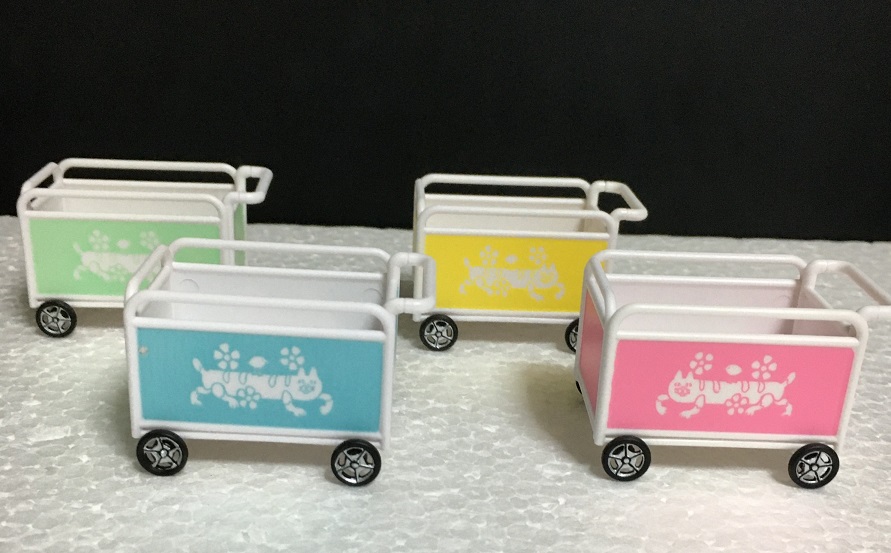 おさんぽカートは組み立て式で、それぞれの猫の帽子と対応した色となっています。