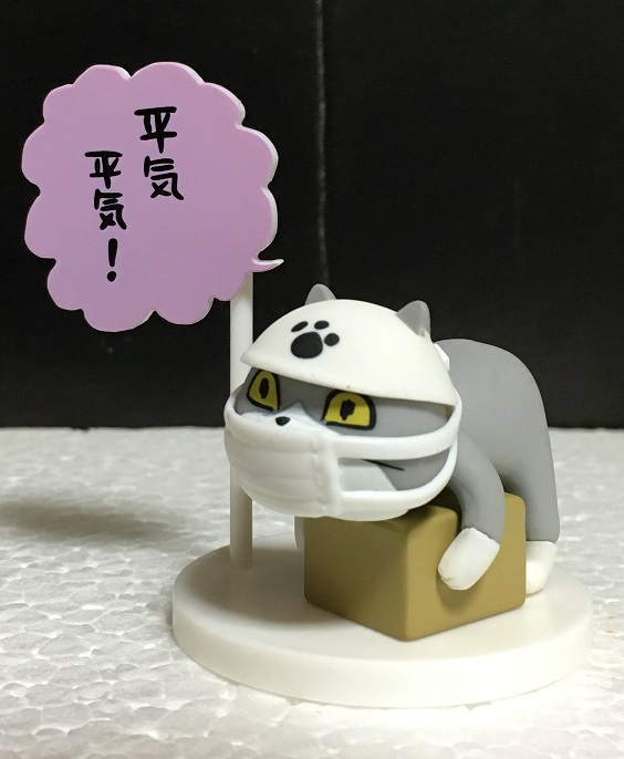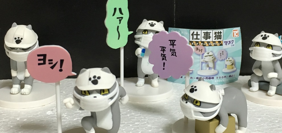 商品としては流用商品で、第1弾の猫にマスクを新規で付けたものとなっています。