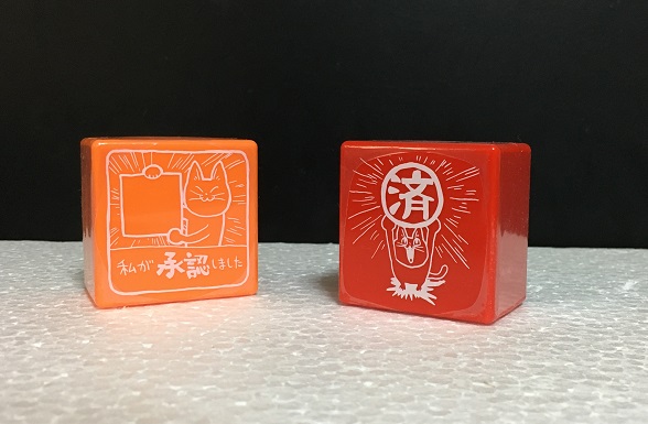 角型の実印っぽい「仕事猫」には渋さすら感じます。もし本名が「仕事猫」という方がいたら実際に実印として使えるかも?(ムチャなコトを…)