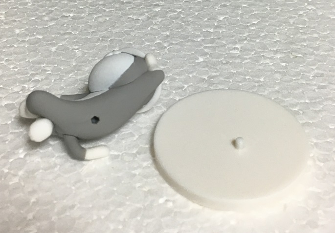 ベースのピン部分を仕事猫側の穴に差し込むことで固定します。