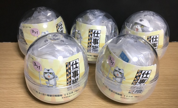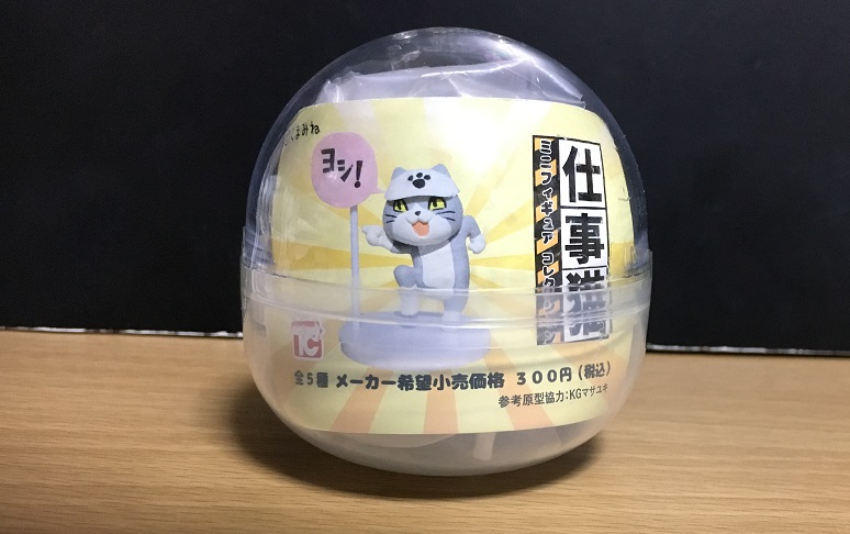 「今回はトイズキャビンのカプセルトイ、「仕事猫 ミニフィギュアコレクション」を紹介します。発売は去年の11月です」
