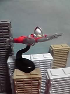 左の画像は、飛行ポーズのウルトラマンで、ディスプレイ用の台座が付属します。