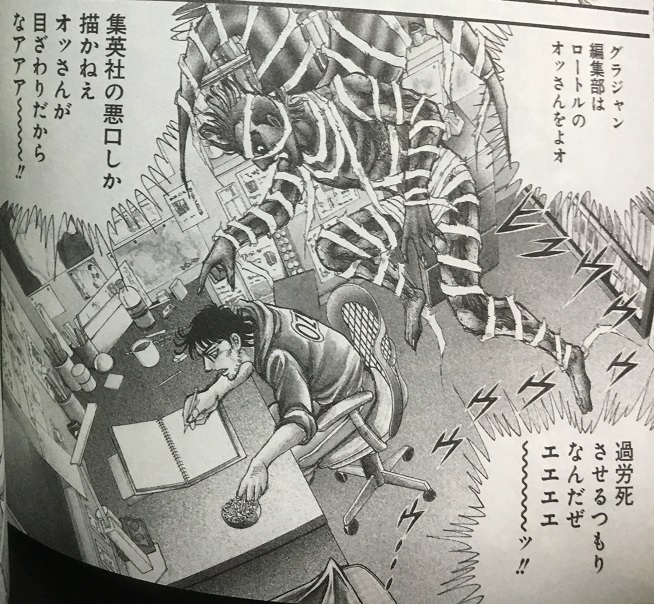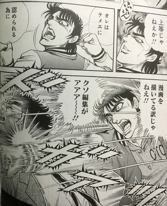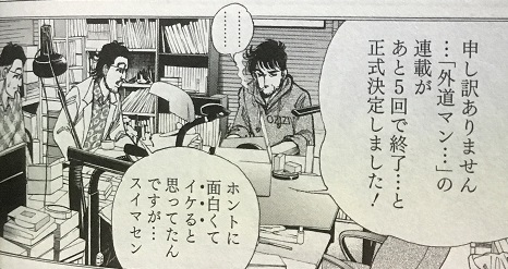 いろいろな要素が加わり、気づけば裏話的な漫画から、〝外道マン〟あるいは編集者との闘いを描いた漫画(?)に様変わり。そのワリに連載時はあまり気にならなかったという点も含めて、往年の「少年ジャンプ」漫画っぽい気もします。