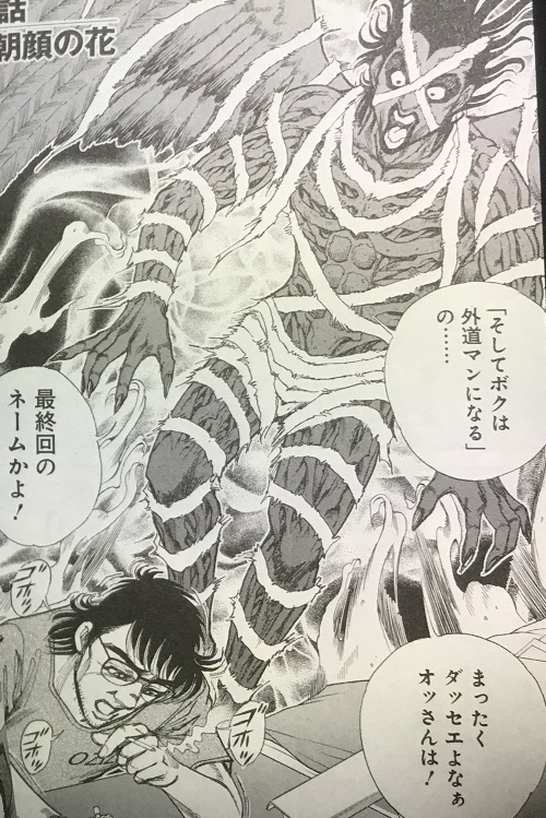 名前のとおりまさに外道な〝外道マン〟は、平松先生を怒らせて〝外道マン〟にしようと、あらゆる罵詈雑言を並べてます。