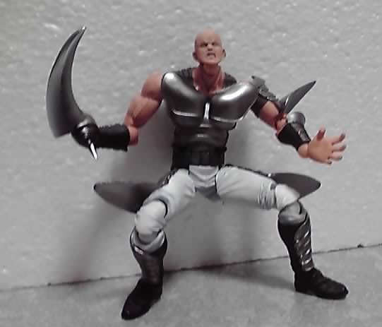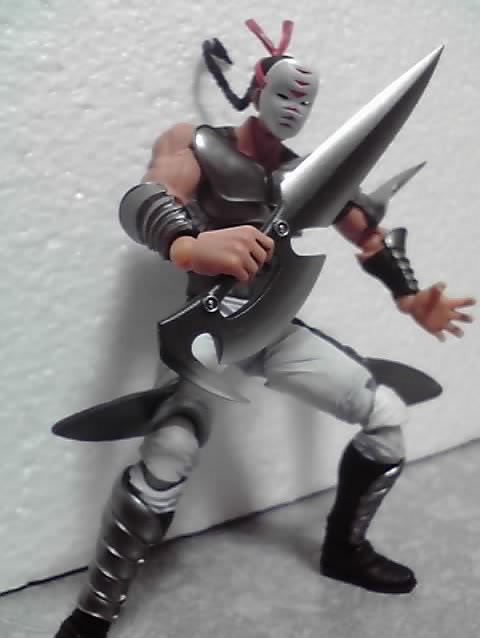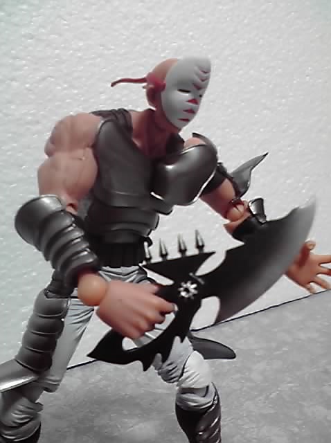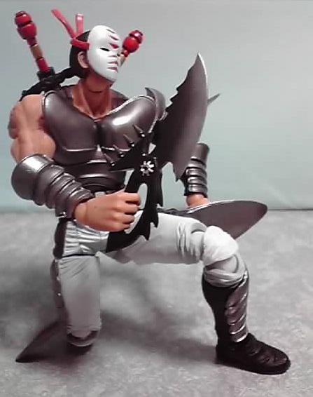 スキンヘッド、仮面なし、鎌装備で、「カイオウ滅殺隊」所属の修羅になります。ただし漫画では、両手に鎌を装備してました(-_-;) つまり2つ買えと…(--;)