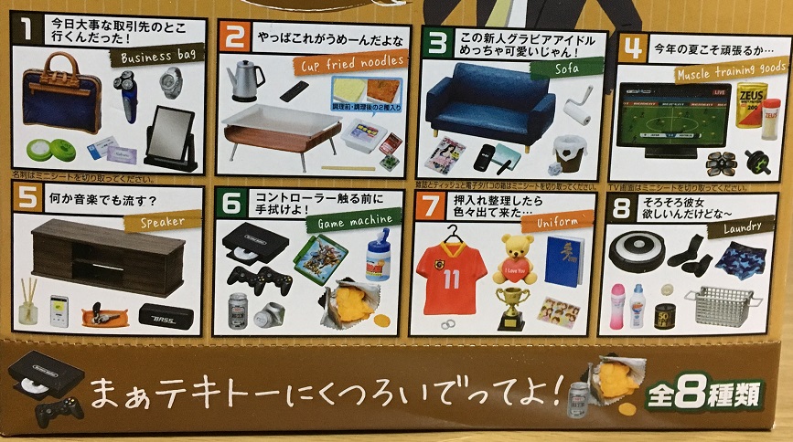 似た感じの商品として、「ぷちサンプル ズボラちゃんのお部屋事情」という商品が2018年4月に発売されています。そちらは、今回の小ぎれいな男の部屋って感じのとは対照的にメンドくさがりな女子の部屋って感じでした。そちらも持っているので、そのうち紹介しようと思っています。