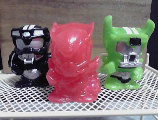 ここまで書いて思い出したのですが、『ZO』とか『J』が映画になった時って、入場者プレゼントで蓄光素材の指人形が配られました。アレは「仮面ライダーSD」の指人形を流用した物なのですが、「ちびコレ」ってその「仮面ライダーSD」の流れを受け継ぐシリーズなんですよね。(初期の『仮面ライダー』の「ちびコレ」は、「仮面ライダーSD」で発売された物の再販でした)