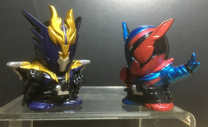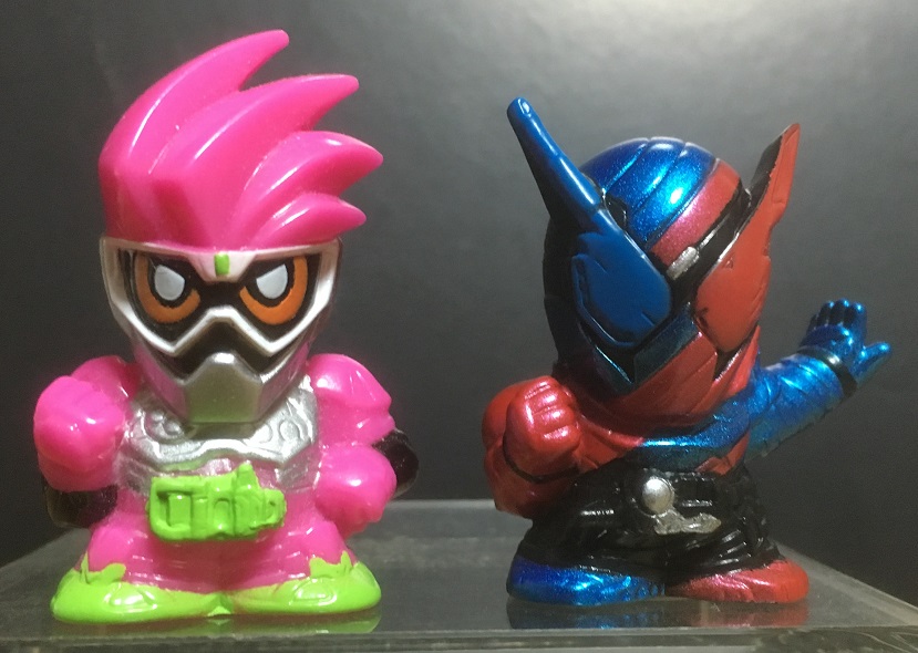 前作『仮面ライダーエグゼイド』の仮面ライダーエグゼイド(アクションゲーマーレベル2)と並べてみました。今公開中の映画『仮面ライダー平成ジェネレーションズFINAL』などで共演しています。
