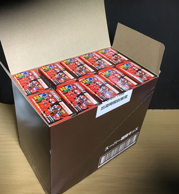 なお2018年11月5日の記事で紹介した、同じく久しぶりの食玩指人形となった「平成仮面ライダーキッズ -20ライダー集結!!編-」は今回の「戦隊キッズ」と同じ1BOX20箱入りのブラインド仕様でした。その「平成ライダーキッズ」の方は全20種類で1BOX内にダブりが無かったのですが、新規は4種類で残りは過去商品の流用でした。今回の「戦隊キッズ」は15種全部が新規造形なので、贅沢な仕様といえるでしょう。