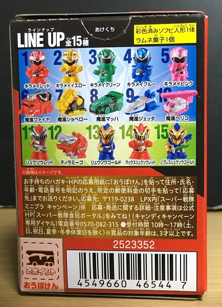 最新の『キラメイジャー』だけでなく、前作『リュウソウジャー』のキャラも一部ラインナップ。出来たら第2弾、第3弾と続いて、商品名どおりいろいろな『スーパー戦隊』の指人形を出してほしいです。
