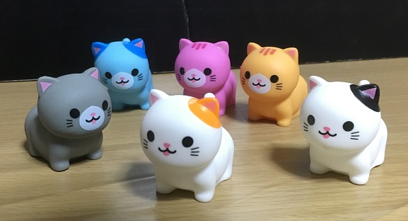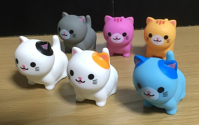 「種類は今回も6種。例によって、1つの金型の使い回しで、実在しないハデな色の猫もおります」