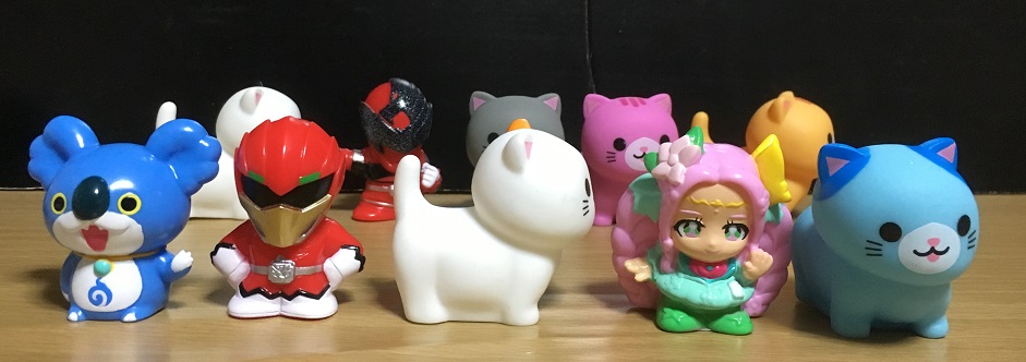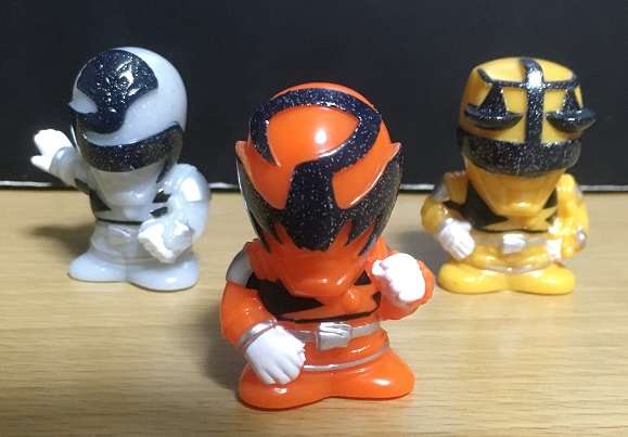 残るデフォのメンバー、サソリオレンジ、テンビンゴールド、ヘビツカイシルバーの3人は、画像検索で見ることができたので、今後景品化されるようです。追加メンバーのリュウコマンダーとコグマスカイブルーも出してほしいところですが、はたして? ペガサスシシレッドも出てほしいのですが、ここ近年は戦隊の強化形態はすくい人形化されてないし、キビシイかな…?