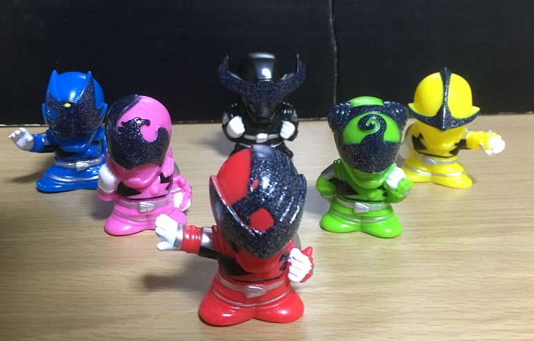 とはいえ、私が知ってる限りで唯一の『電撃戦隊チェンジマン』のSD体型の商品なので、他の『戦隊』の指人形やすくい人形、キーホルダーなどと並べようと思います。