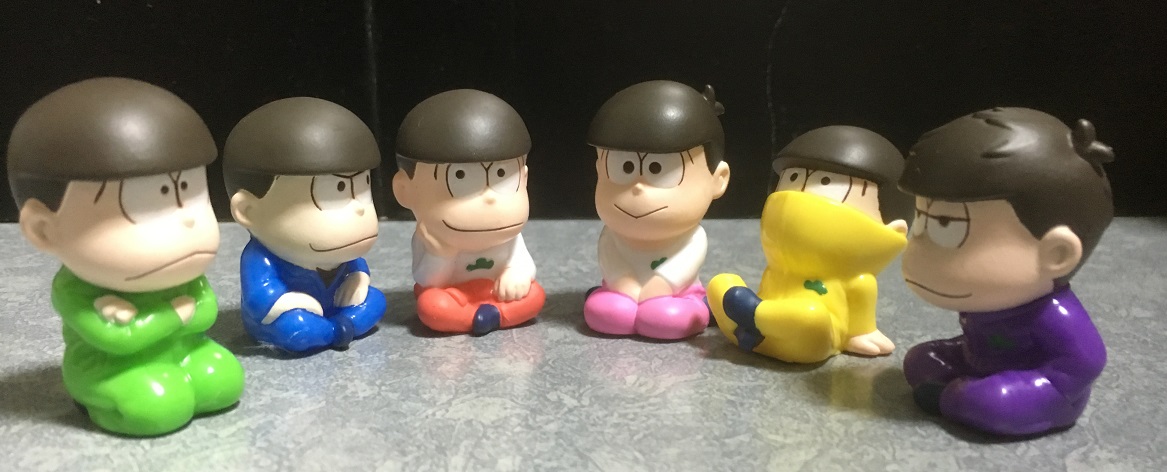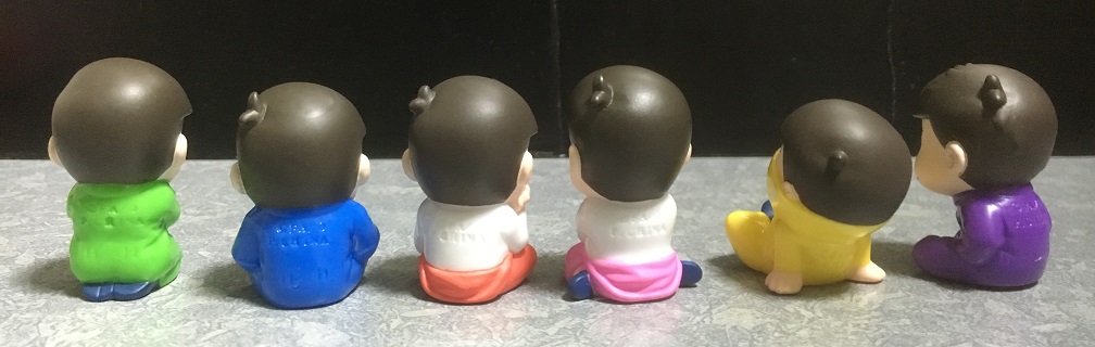 まあチビ太やイヤミに混じって主人公のおそ松だけがラインナップされてるのもありましたが、そのおそ松を6つ集めて六つ子にした(かった)人もやっぱり多かったのでしょうね。