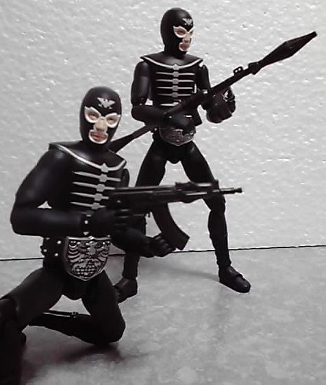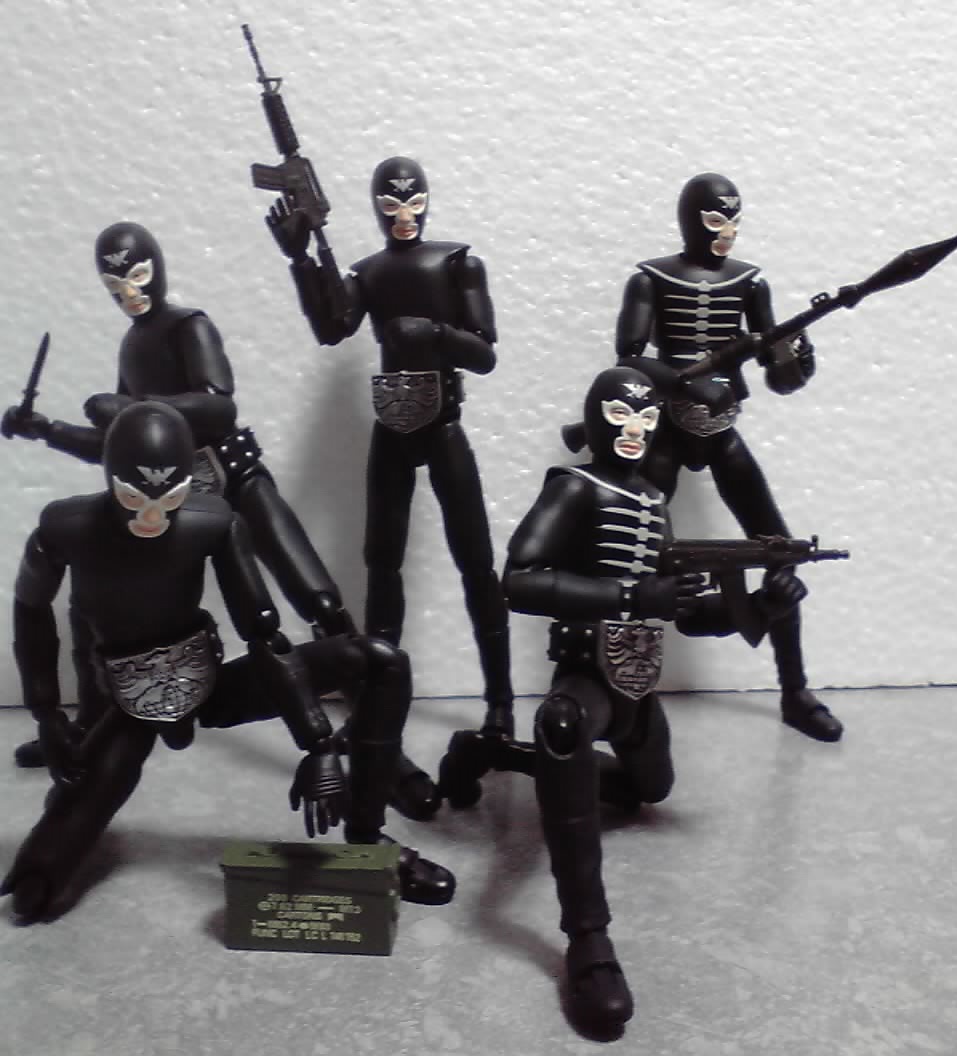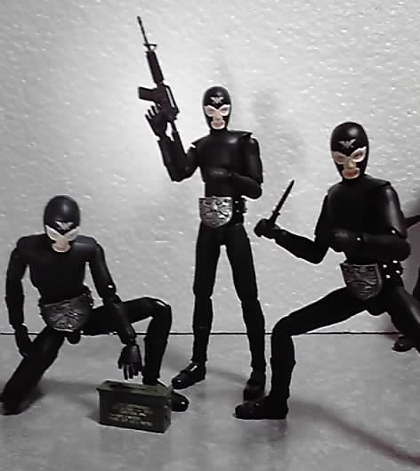 (11月24日訂正。(骨)の戦闘員にはナイフ(ショッカーのマーク付き)が付いていました(^^;)> (黒)の方には付属しませんけど)
