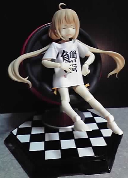 346プロのオフィスに置いてありそうな椅子は、ミニチュアでもわりと高め。もっとお安い物で何とかならないかと探していた時に見つけたのが、今回の椅子(と不二子ちゃん)というわけです。