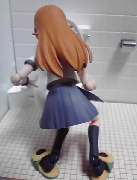 『世界でいちばん強くなりたい!』という女子プロレスアニメで、主人公の萩原さくらが先輩たちから地獄のスパーリングをされ、次の場面では洋式トイレの前でうずくまっていました。てっきり吐いてるのかと思って心配になったのですが、実は新入りらしく雑用としてトイレ掃除していただけでした。さくらのフィギュアは無いので、中の人が同じ桐乃に代役してもらってます。