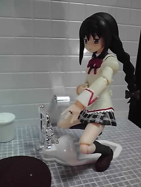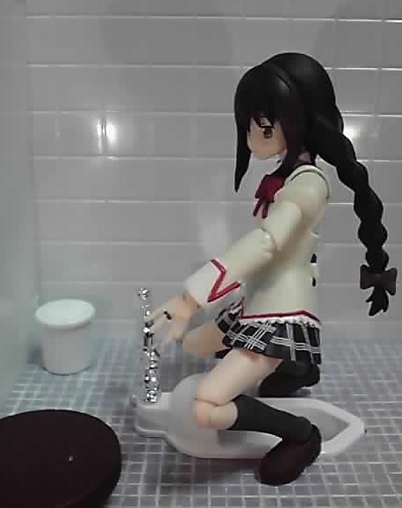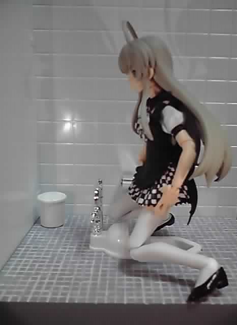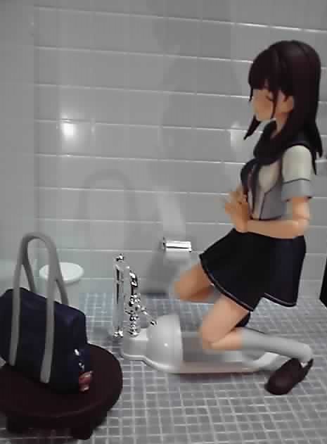 それから、トイレという場所を再現するディオラマなので、そこに置くとフィギュアのイメージが損なわれてしまう可能性があります。とはいえ、いろんなキャラに登場してもらってますが、一連の記事のメインはあくまでトイレのプラモの方です。トイレプラモの魅力を伝える為に、登場するフィギュアはいろんなリアクションをしてます。本編を思い出させる行動をしているキャラ、どうということのない無難な仕草をしているキャラ、本編とは似ても似つかぬキャラになっている者と、リアクションはいろいろ。もしかしたら、見る人によっては不快に感じられる画像もあるかも知れません。